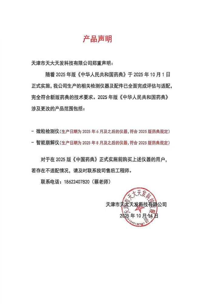| 尊敬的各界朋友們: 歡迎您進(jìn)入天津市天大天發(fā)科技有限公司的網(wǎng)站進(jìn)行瀏覽,首先感謝各界朋友多年來對(duì)天大天發(fā)藥品檢測儀器和分析儀器的關(guān)心與支持! 天津市天大天發(fā)科技有限公司是通過ISO9001質(zhì)量管理體系認(rèn)證、ISO14001環(huán)境管理體系的認(rèn)證的高新技術(shù)企業(yè),是專業(yè)的藥檢儀器和分析儀器的制造廠商。 我們的產(chǎn)品包括藥品溶出儀系列、微粒檢測儀系列、內(nèi)毒素檢查儀系列等40余種產(chǎn)品,主要產(chǎn)品覆蓋了全國所有省區(qū),部分產(chǎn)品已進(jìn)入海外市場。公司在藥檢領(lǐng)域樹立了良好的品牌形象,贏得了廣大用戶的贊譽(yù)。 公司將更好地適應(yīng)瞬息萬變的市場,增強(qiáng)企業(yè)的核心競爭力。抓住全球經(jīng)濟(jì)飛速發(fā)展的歷史性機(jī)遇,以創(chuàng)新精神進(jìn)行新的創(chuàng)業(yè)。以高起點(diǎn)、高速度、高效率創(chuàng)造出中國藥品檢測儀器和分析儀器領(lǐng)域中的品牌形象,立足中國,走向國際。 我們熱切希望您成為天大天發(fā)科技有限公司的合作伙伴! |